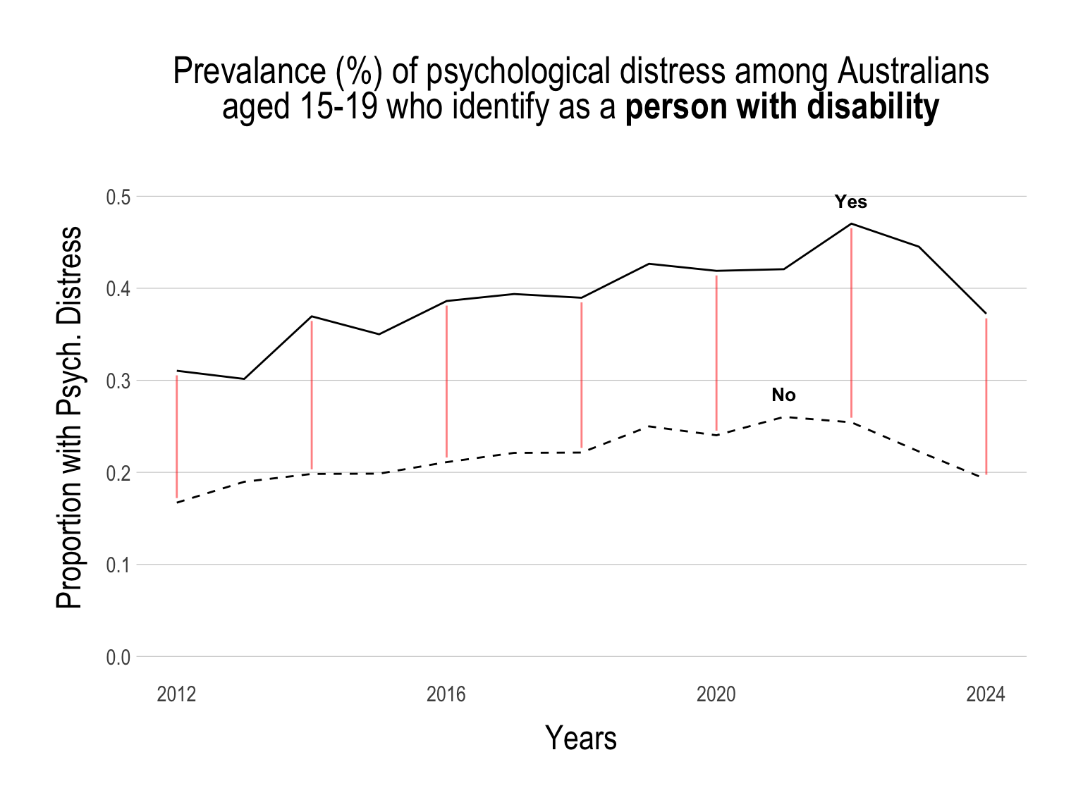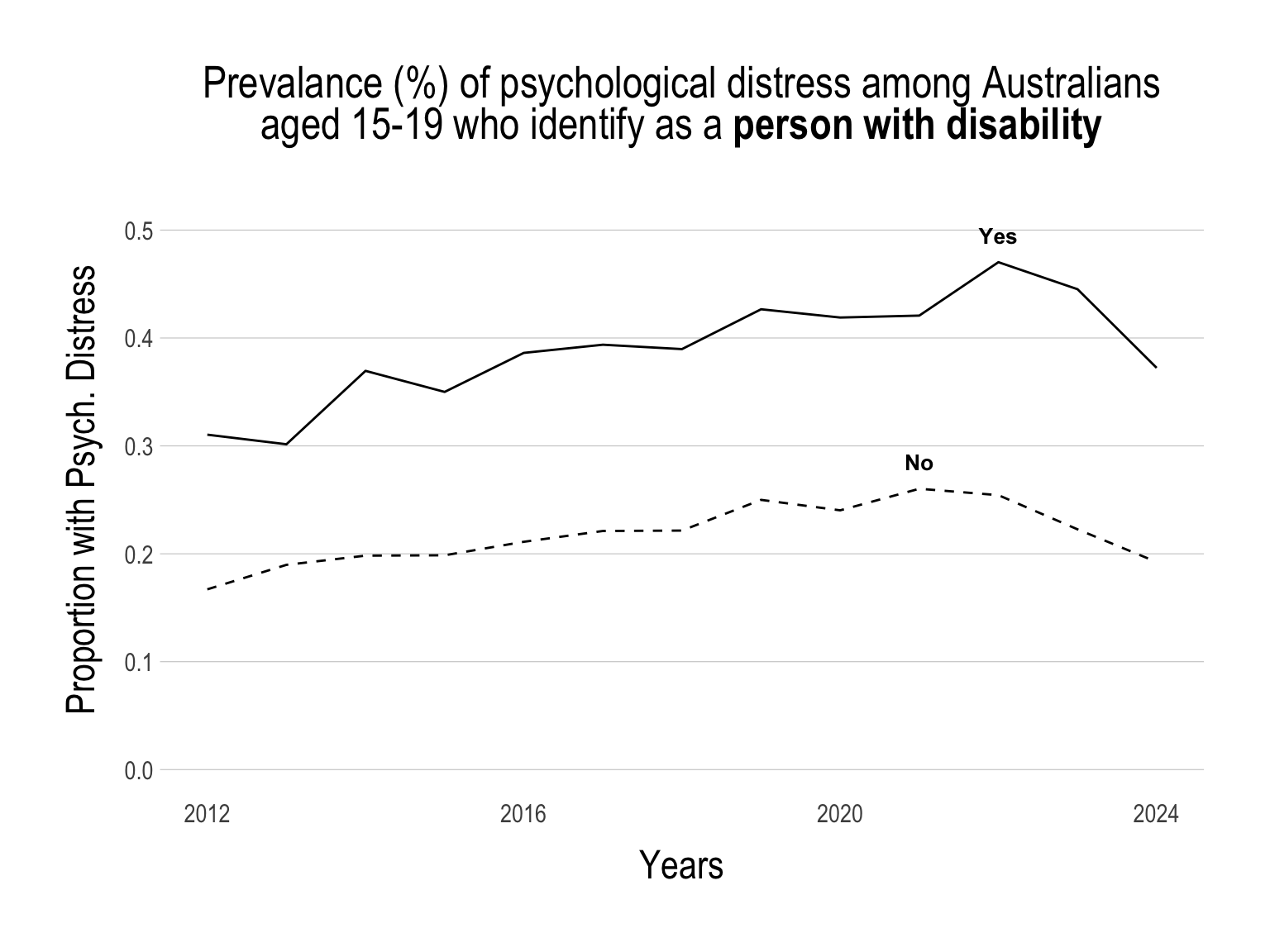 This is reflected in both objective (i.e., suicide and hospitalisation rates) and subjective (i.e., self-reported psychological distress) measures of mental ill-health.