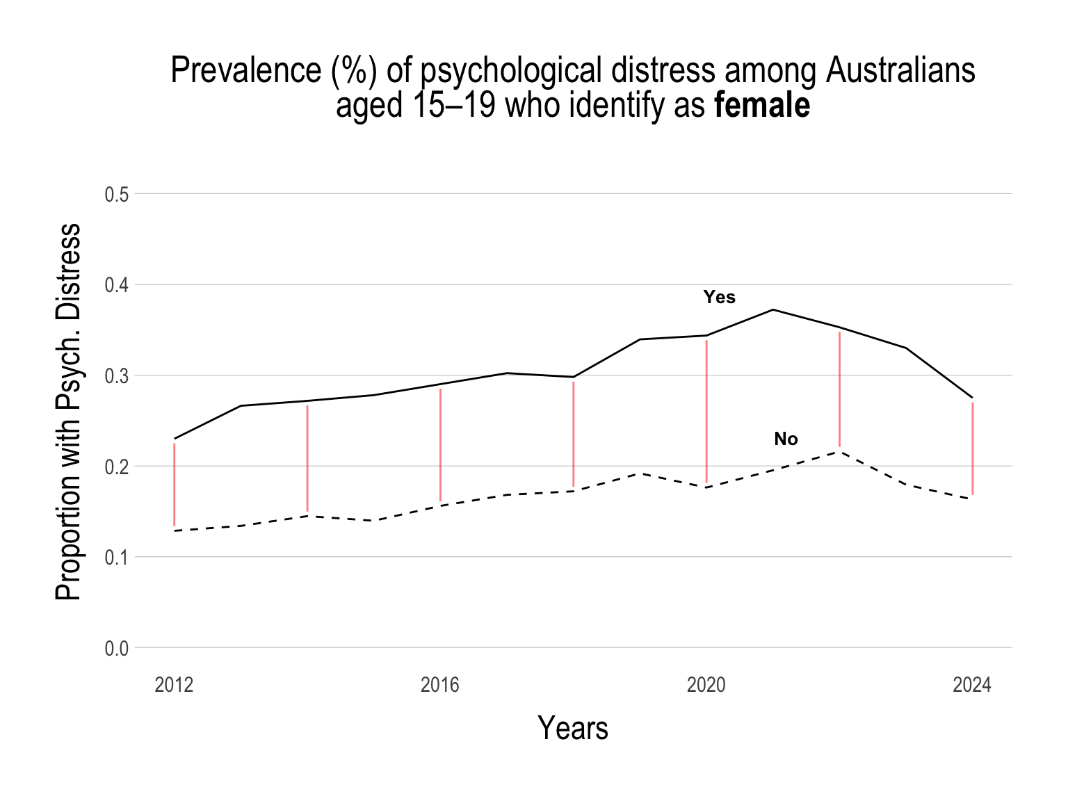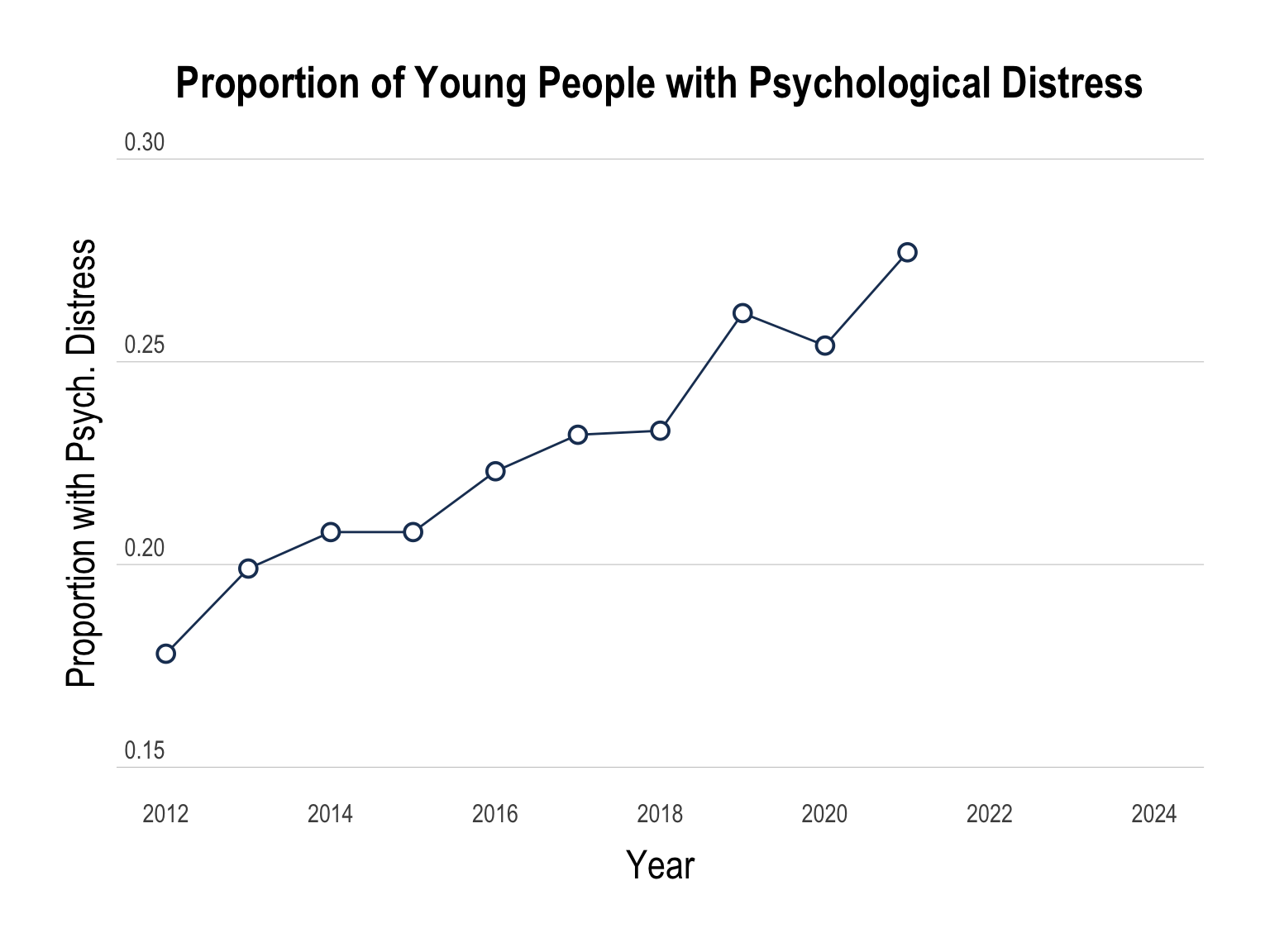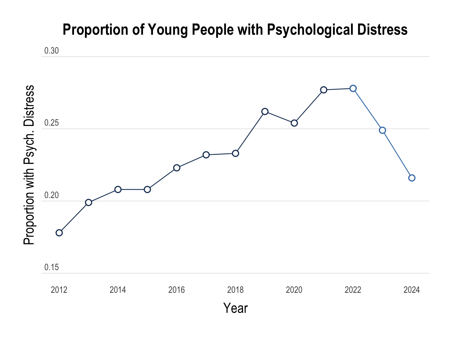 Mission Australia has surveyed the psychological distress of young people (people aged 15 to 19) in the annual Youth Survey since 2012.