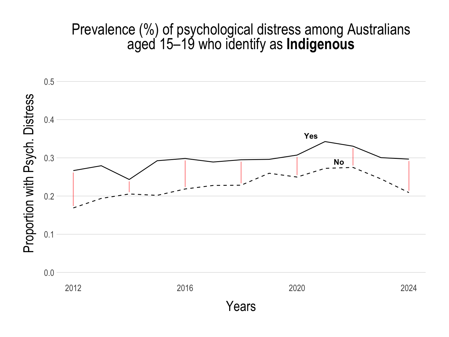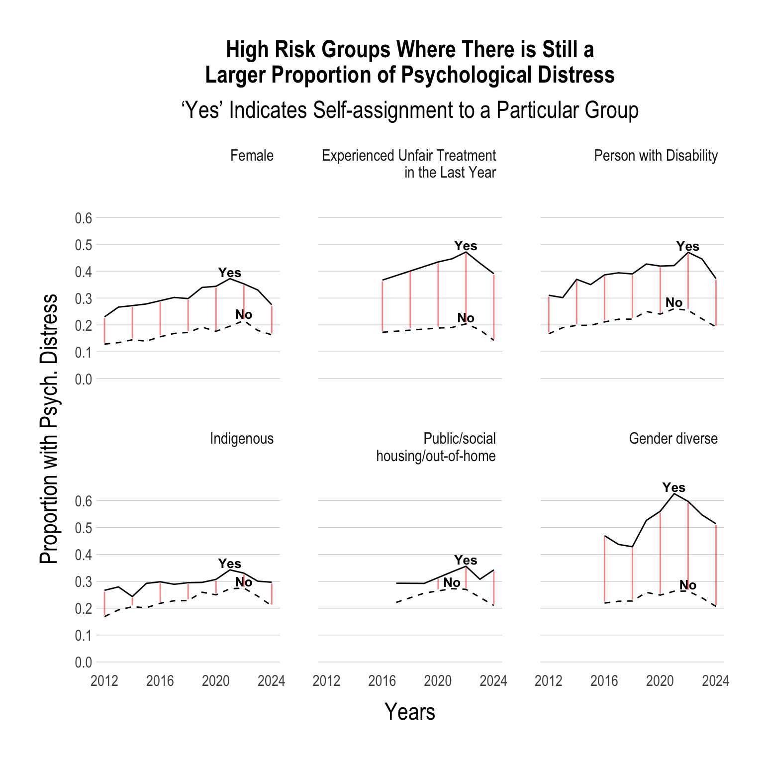While the proportion of young people with psychological distress has been on the decline, the gap within specific sub-groups has not decreased.
