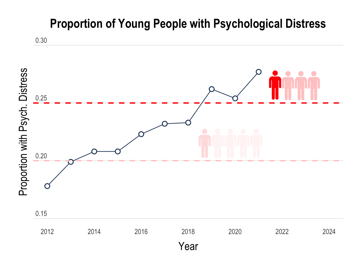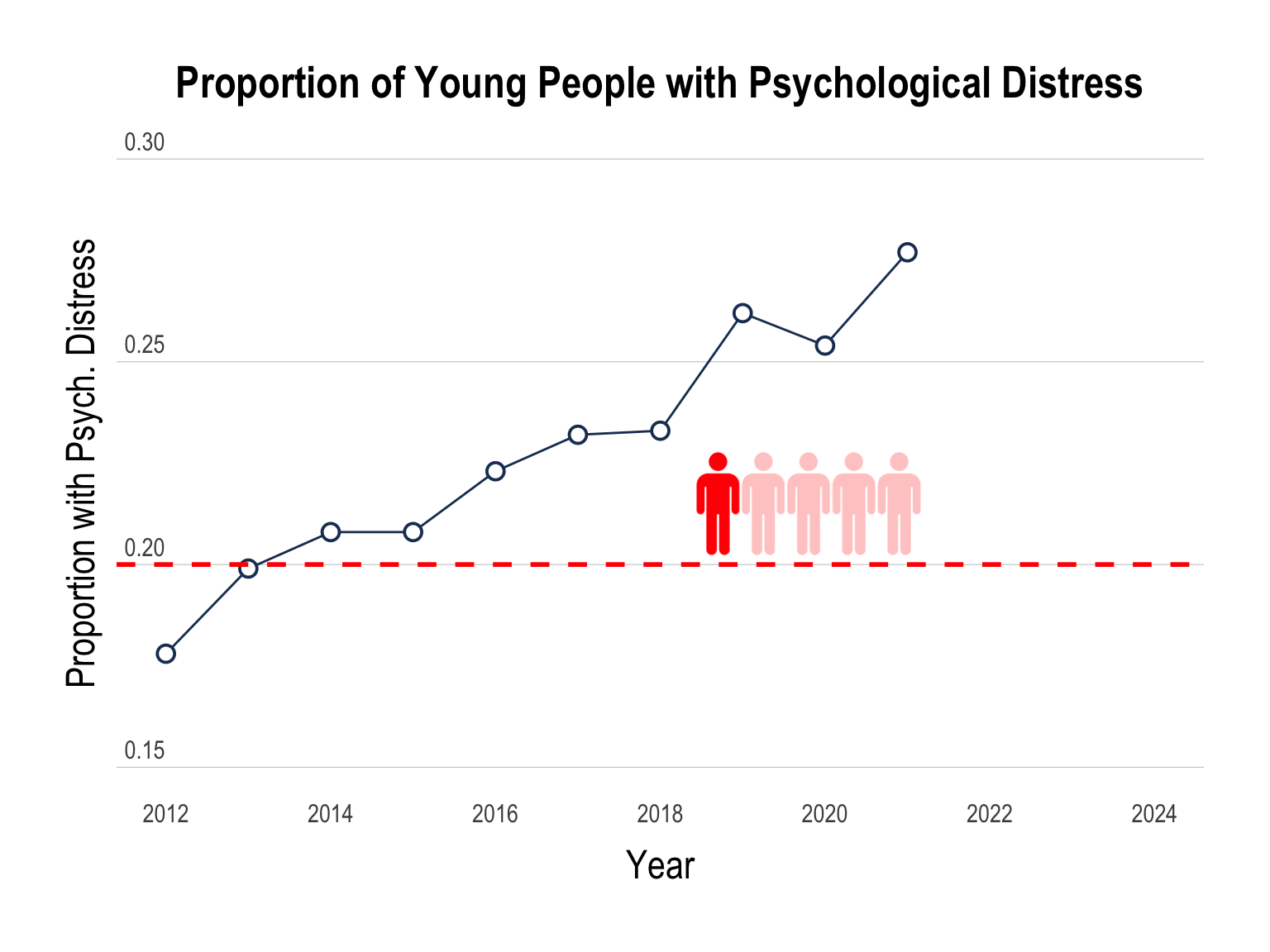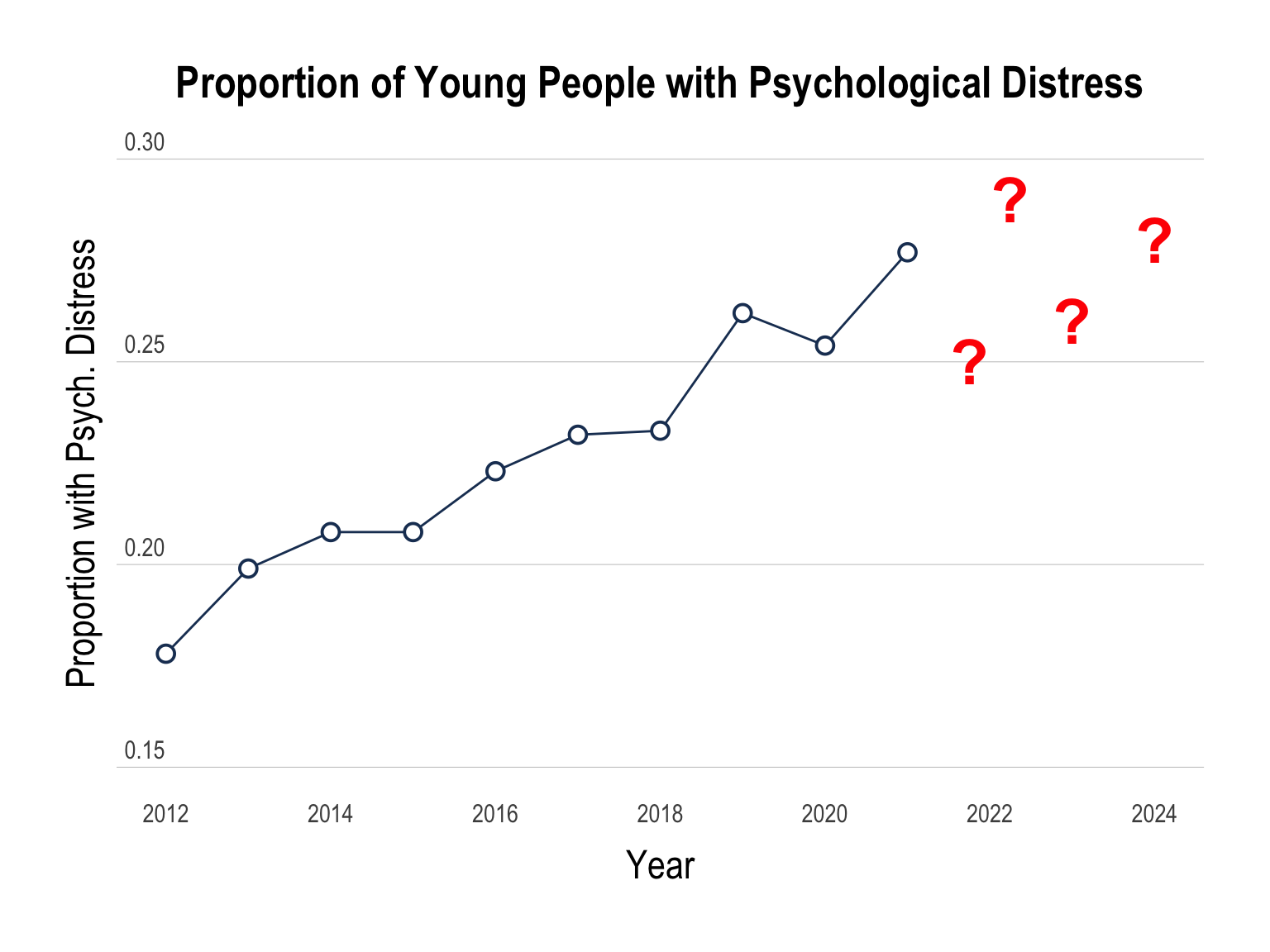 Nationally-representative household surveys have found the prevalence of psychological distress among people aged 15-24 has also increased from 18.4% in 2011 to 37.6% by 2023 (Laß et. al., 2025).